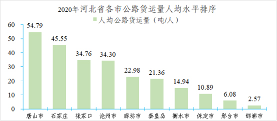 廊坊市货物运输以公路为主,“十三五”期间,廊坊市公路货运需求水平总体在全省保持前列,2020年,廊坊市公路货运总量位居唐山、石家庄、张家口、沧州市等四市之后排名第5;在人均公路货运层面,2020年,廊坊市公路货运量人均水平达到22.98吨/人,在全省各市排名中位居第5。