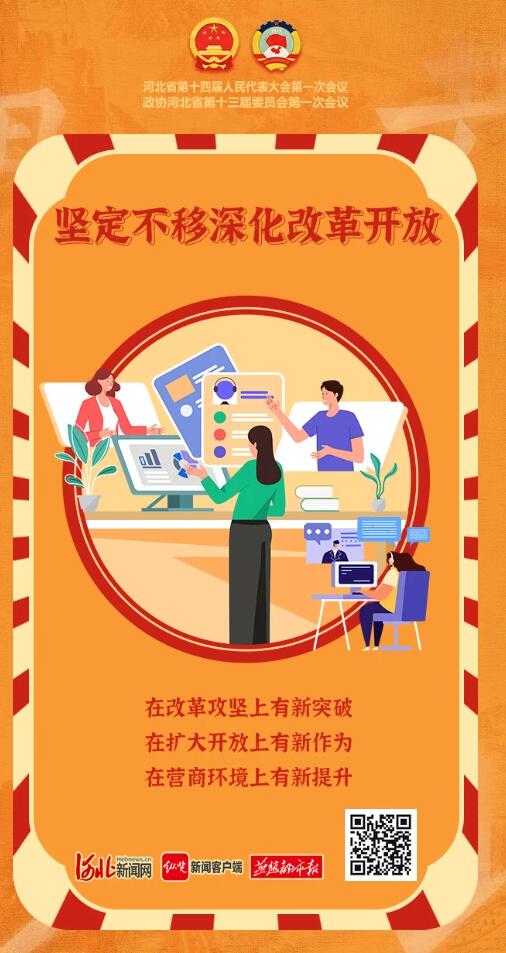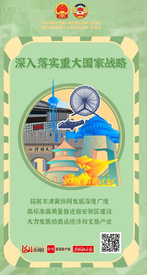 2023年1月11日上午,河北省第十四届人民代表大会第一次会议在石家庄开幕。省长王正谱代表河北省人民政府向大会作政府工作报告。报告提出,2023年河北省重点做好八个方面工作。一组海报,带您看2023河北发力点↓